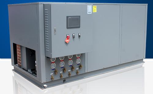 冷媒在压缩机的作用下在系统内循环流动。它在压缩机内完成气态的升压升温过程(温度高达115℃),它进入内机释放出高温热量加热烘干房内空气,同时自己被冷却并转化为流液态,当它运行到外机后,液态迅速吸热蒸发再次转化为气态,同时温度下降至零下20℃——30℃,这时吸热器周边的空气就会源源不断地将热量传递给冷媒。冷媒不断地循环就实现将空气中的热量搬运到烘干房内加热房内空气温度。